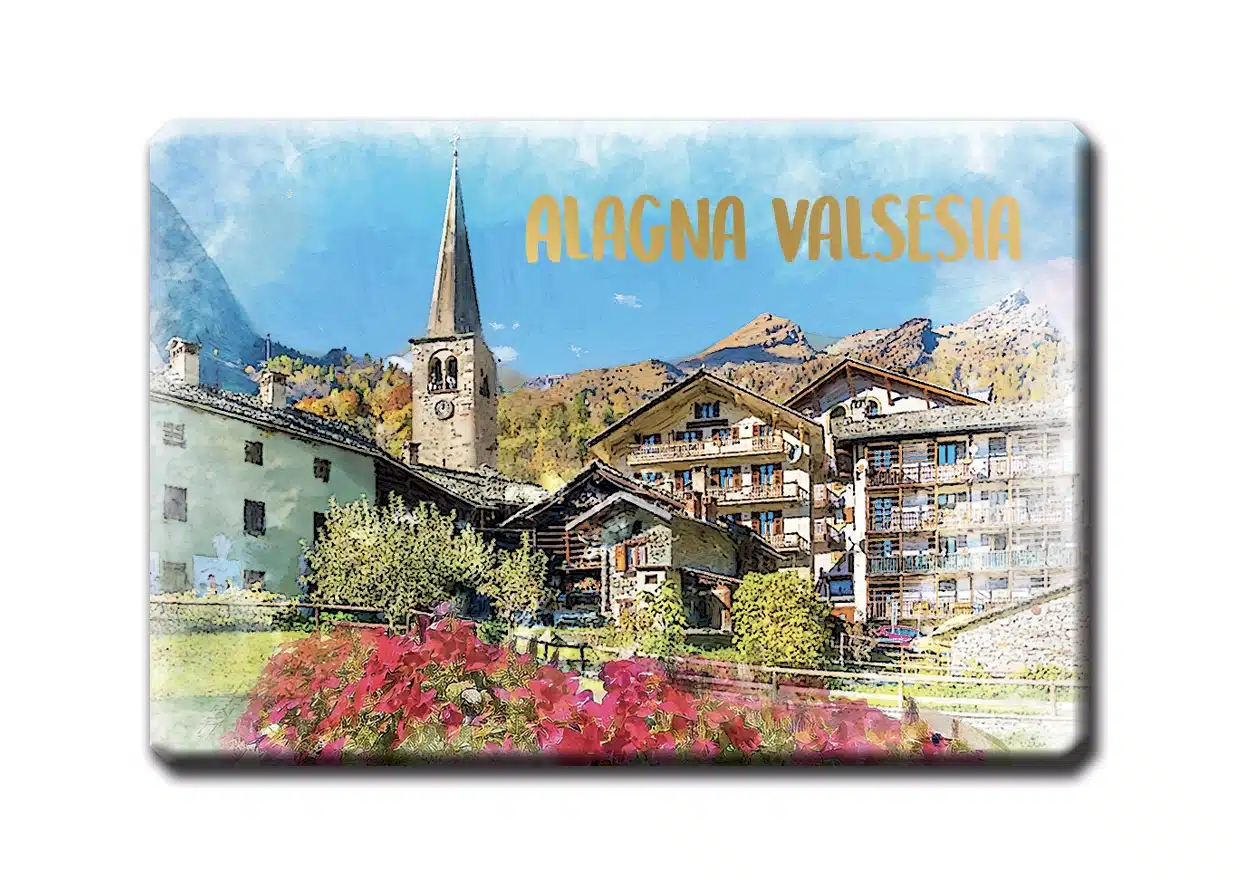 Metallo Oro Corto Novità, Calamite, Metallo Oro Calamite Rettangolari Corte in metallo, stampate su carta velluto con scritta in oro. Formato 8×5,5 cm. Personalizzabili per singola località.